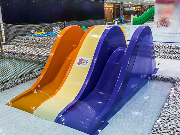 4계절 내도록 따뜻한 청결하고 안전한 친환경 해수풀에 워터 슬라이드, 시소, 물총놀이에 각종 분수까지