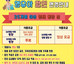형제와 동반 입장하는 24개월 이하 손님 할인