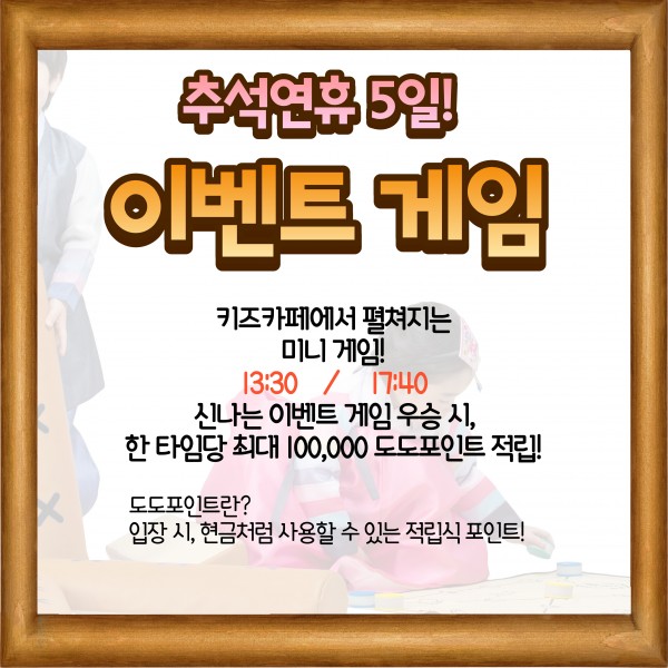 추석이벤트 페이지 정보 기간00 ~ 001 조회view 710 본문 신나는 추석이벤트 관련링크 https://youtu.be/qsHl3shEs70?si=hWqXfsm5Gd5iRNWK 429회 연결 목록 다음글우주 / 플라워 파티 ~ 23.03.22